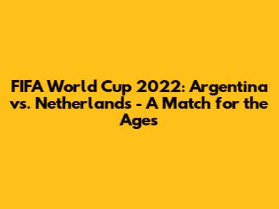 FIFA World Cup 2022: Argentina vs. Netherlands - A Match for the Ages