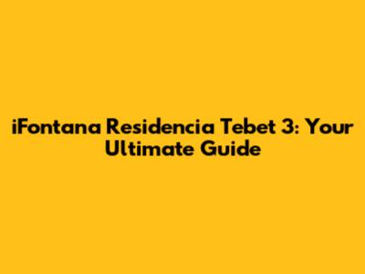 IFontana Residencia Tebet 3: Your Ultimate Guide